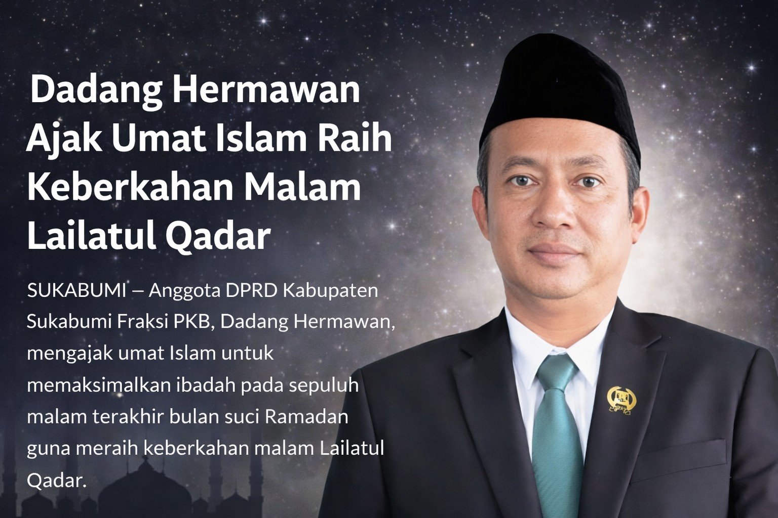 Nuasaberita.com_Anggota DPRD Kabupaten Sukabumi dari Fraksi PKB, Dadang Hermawan, mengajak umat Islam untuk memaksimalkan ibadah pada sepuluh malam terakhir bulan suci Ramadan guna meraih keberkahan malam Lailatul Qadar.