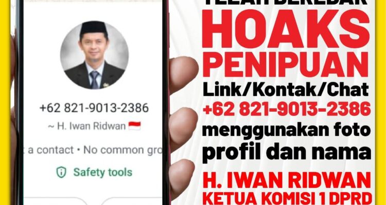 H. Iwan Ridwan Hoax, Nama Ketua Komisi I DPRD Kabupaten Sukabumi Dicatut, Iwan Ridwan Imbau Masyarakat Waspada Penipuan Berita, Hukum dan Kasus|March 10, 2026March 11, 2026by Admin Nuasa Nuasaberita.com_Nama Ketua Komisi I DPRD Kabupaten Sukabumi, H. Iwan Ridwan, dicatut oleh